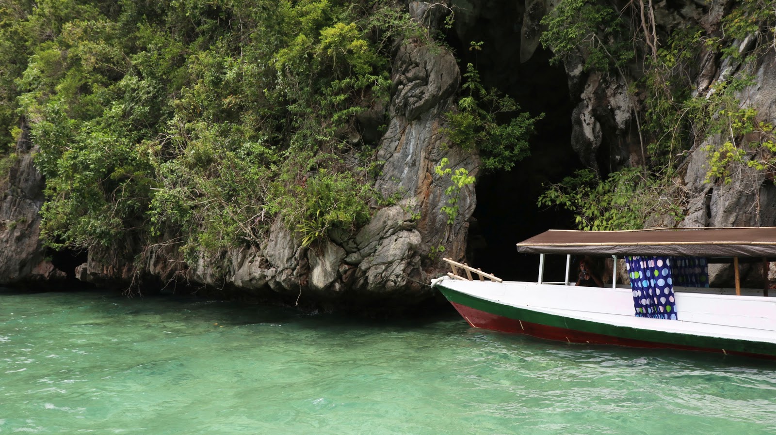 Menempuh perjalanan sekitar 15 menit, menyusuri keindahan sepanjang perjalanan sampailah kami ke Goa Allo. Dari luar terlihat perairan dangkal dengan bukit tebing. Terlihat 2 mulut goa di dinding bukit. Setelah kapal kami merapat, kemudian kami berenang menuju gua, buat yang tidak bisa berenang harus memakai pelampung.